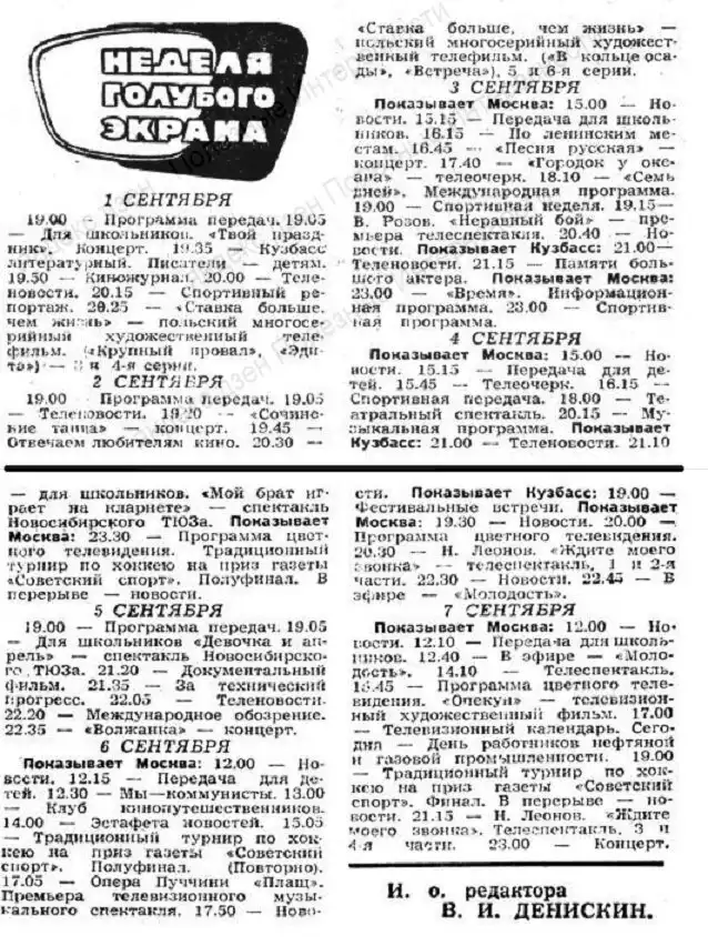 Эту газету почтальон приносил в субботу и возвращаясь из школы мы обнаруживали его в почтовом ящике. Даже не отходя от ящика, быстро пробегали глазами в поисках интересных фильмов следующей недели.