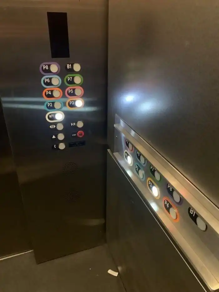 Кнопки в лифте с номерами этажей, которые можно нажать ногой