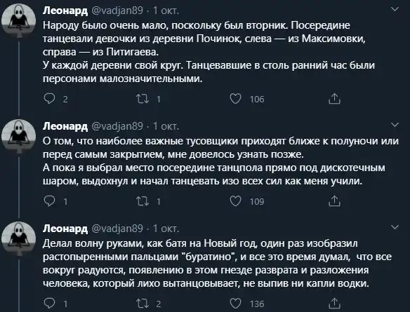 Один из пользователей Twitter рассказал о своем первом походе на деревенскую дискотеку, чем вызвал ностальгию у огромного количества людей. А вы когда-нибудь бывали на деревенских вечеринках? И как оно?