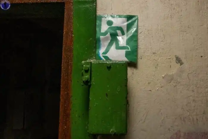 В конце блока располагалась ещё одна модель защитно-герметической двери, за который находился аварийный выход через вентиляционную шахту с гермолюком наверху.