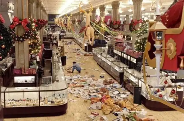 Конец рабочего дня в магазине Macy’s в канун Рождества, Нью-Йорк, 1948 год.