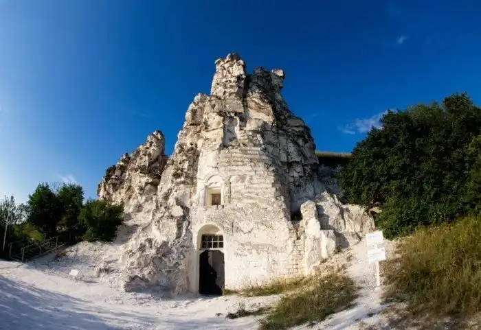 Бежавшие от гонений монахи основывали монастыри в пещерах и гротах не только в Турции. В нашей стране несколько таких пещерных церквей и монастырей. В Воронежской области на Дону воздвигнуто три таких монастыря: Костомаровский, Белогорский и Дивногорский. На фото представлен маленький, но двухъярусный храм, вырубленный на меловом утесе. Храм построили в начале XIX века, а сам монастырь, существующий здесь с середины XVII века, скрывается за ним.