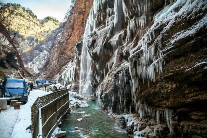 Чегемские водопады, как и расположенные ниже Голубые озера, питаются подземными источниками. Скалы в ущелье разной высоты, и вода, разбиваясь об их уступы, разбрызгивается в разные стороны. Особенно красиво выглядят водопады в свете солнечных лучей, когда вода переливается всеми цветами радуги, и зимой, когда они застывают в причудливых очертаниях. Плитвицкие водопады так же замерзают в падении, как и Чегемские, а кабардино-балкарские озера напоминают хорватские.