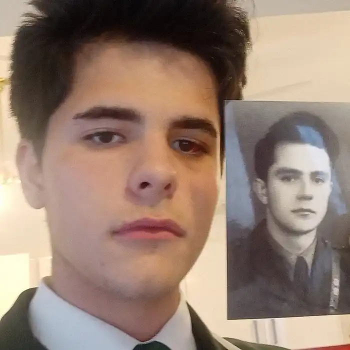 Человек с портрета будто сам удивлён тому, насколько они похожи