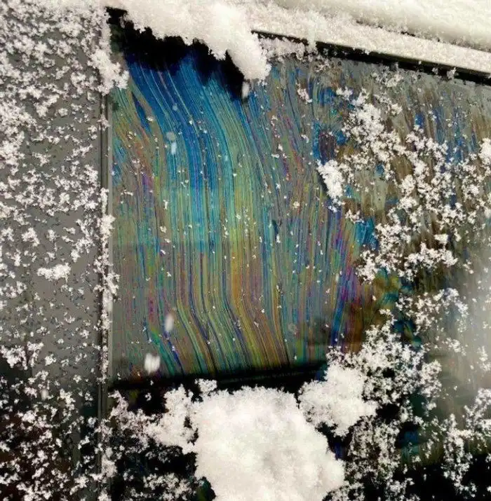 10. "Первый снег оставил радужные дорожки на окнах моей машины"