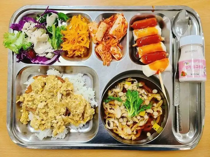 3. "Вот мой шикарный обед в корейской школе! В школах работают квалифицированные диетологи, которые планируют меню"