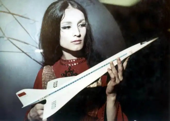 27. София Ротару с моделью самолета Ту–144, 1975 год, СССР