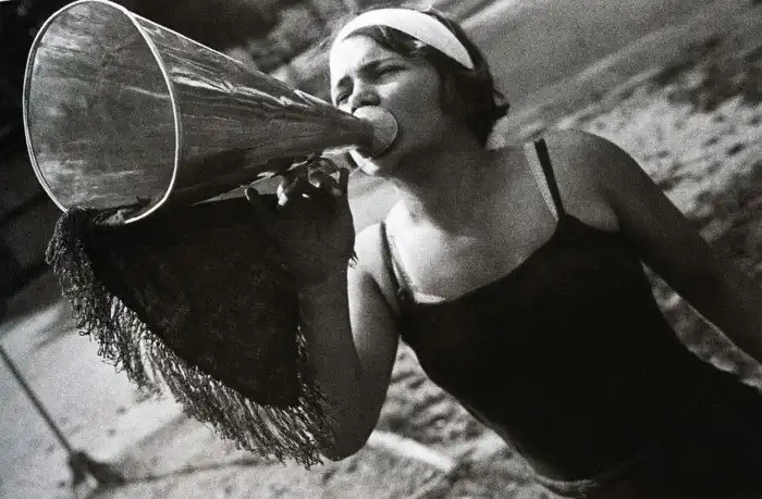 16. 1 августа 1969 года. Демонстрантка снимает бюстгальтер во время акции протеста против бюстгальтеров у универмага в Сан-Франциско. Калифорния, США
