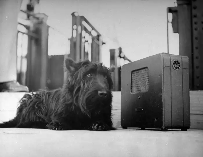11. Фала, шотландский терьер президента Рузвельта, слушает радио (1944 год)