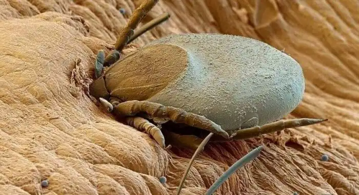 Присосавшийся клещ на теле человека