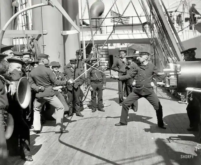 Тренировка по фехтованию.