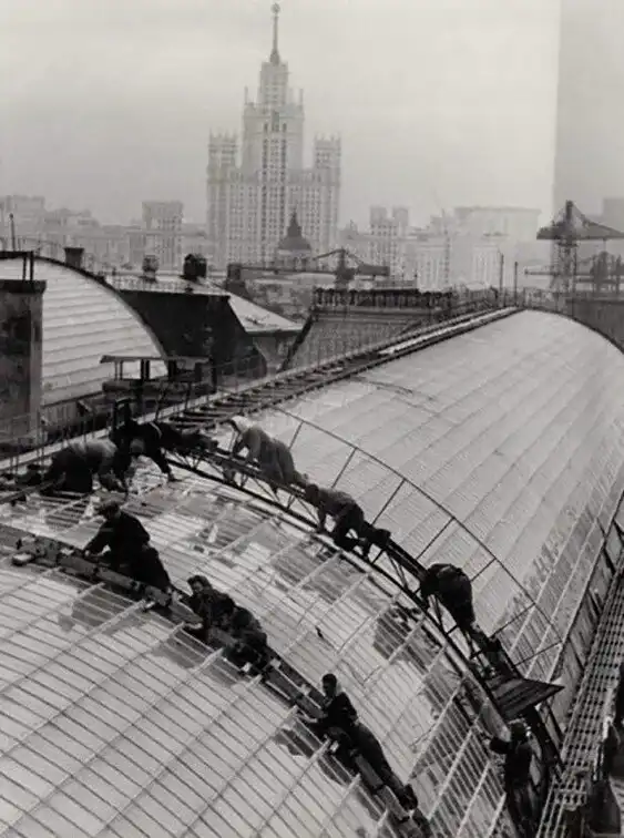 19. Мойка стеклянной кровли над галереей ГУМа. Москва. СССР. 1953 г