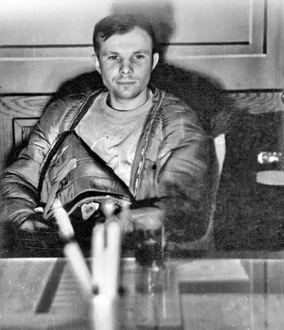 22. Юрий Гагарин через час после приземления, авиабаза «Энгельс», 1961 год