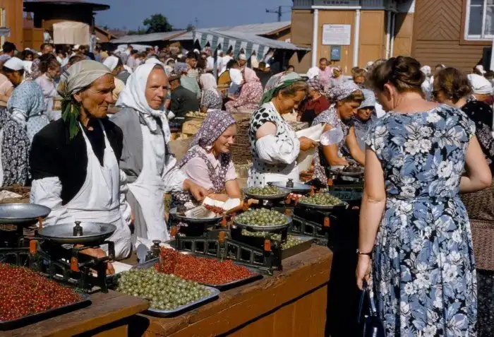 34. Выдача пшеницы и продуктов на трудодни. Автор фото Семён Фридлянд. УССР, 1951