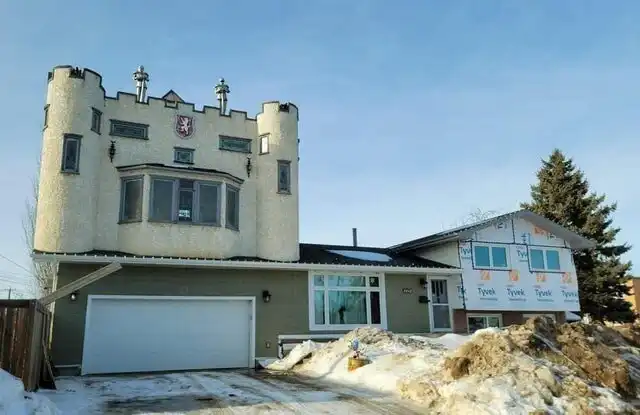 Корова-паук рядом с очень дорогим домом