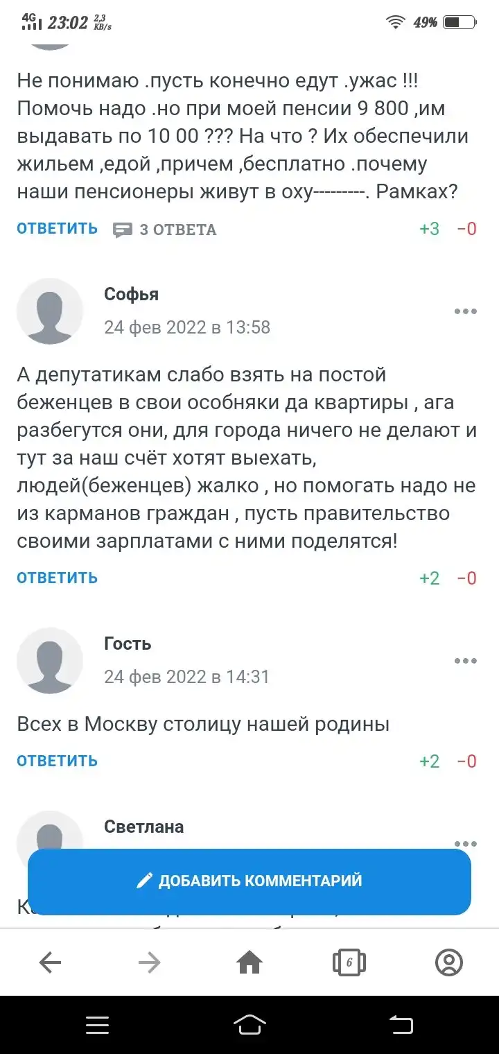 Помню, добрый мужик из Богашево, хотел приютить украинских беженцев. Небольшой утеплённый дом: холодная вода, свет, бойлер, печное отопление с батареями, душевая кабина и прочие кровати. Так приехала семья, походили-посмотрели и сказали - неее.