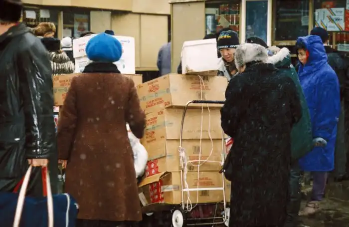 Возле киевского железнодорожного вокзала в Москве. 1994 год.