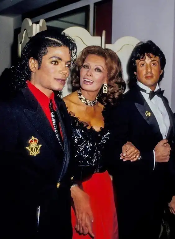 2. Майкл Джексон, Софи Лорен и Сильвестр Сталлоне на 4-й ежегодной премии American Cinema Awards, 1987. Фото Рона Галеллы
