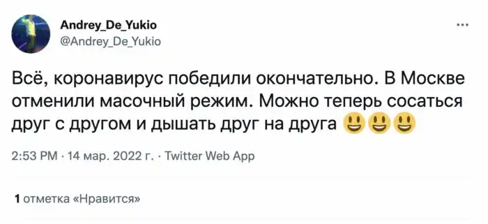 1. В Москве с 15 марта отменили действовавший почти два года обязательный масочный режим