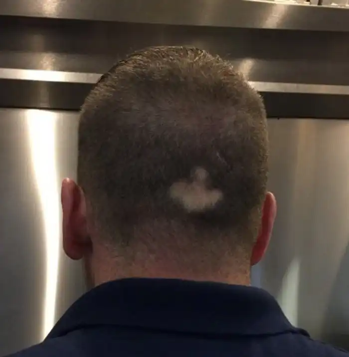 21. "У моего друга есть проплешина в форме стрелки, указывающей вниз (дизлайка)"