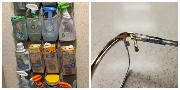 В таком органайзере удобно хранить не только тапочки, но и бытовую химию
