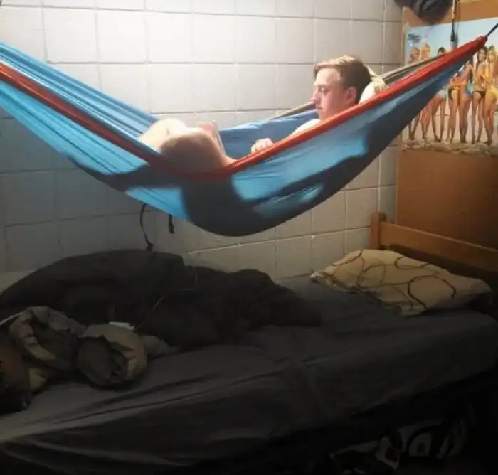 Если качество матраса в общежитии оставляет желать лучшего, то всегда можно соорудить гамак