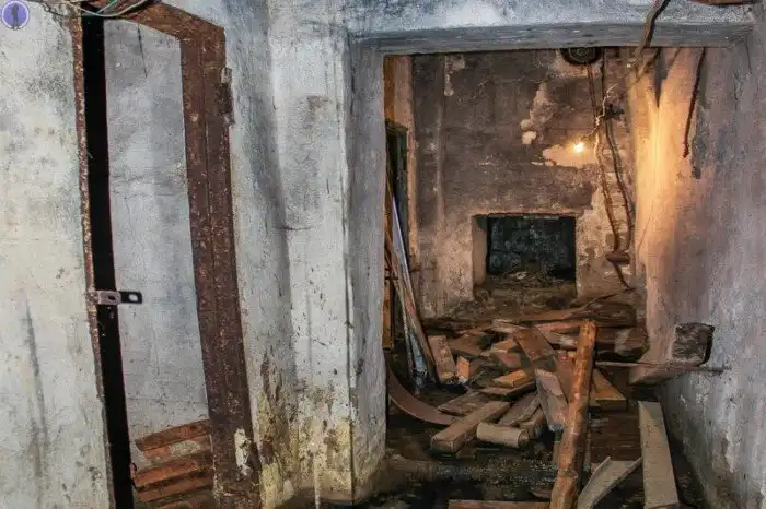 А теперь перейдём во вторую часть убежища, которая не была перестроена, а осталась в том же виде, что и была после многих лет заброшенности в 1990-х гг.