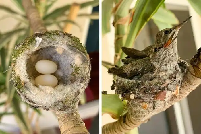 14. "У меня во дворе поселились колибри. Мне посчастливилось наблюдать, как два детёныша колибри вылупились из яиц и превратились в самостоятельных птиц"