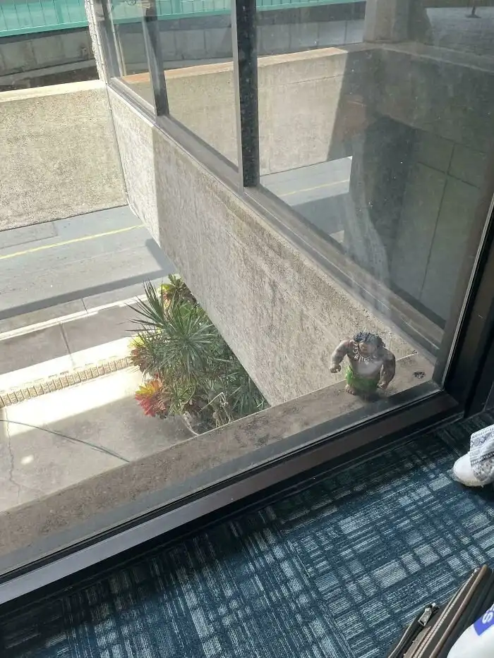 28. Фигурка Мауи за окном в аэропорту острова Мауи