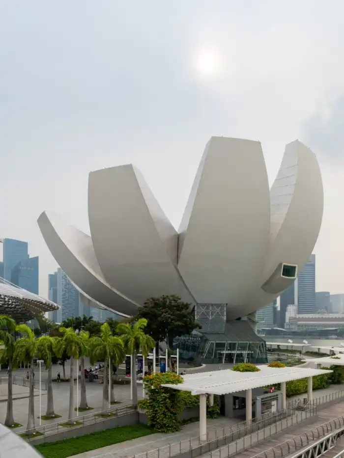 Этот музей является одной из главных достопримечательностей Сингапура. Его форма напоминает чашевидную ладонь или цветок лотоса.