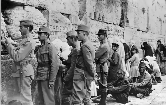 6. Еврейские солдаты австро-венгерской армии молятся у Западной стены в Иерусалиме, 1915 год