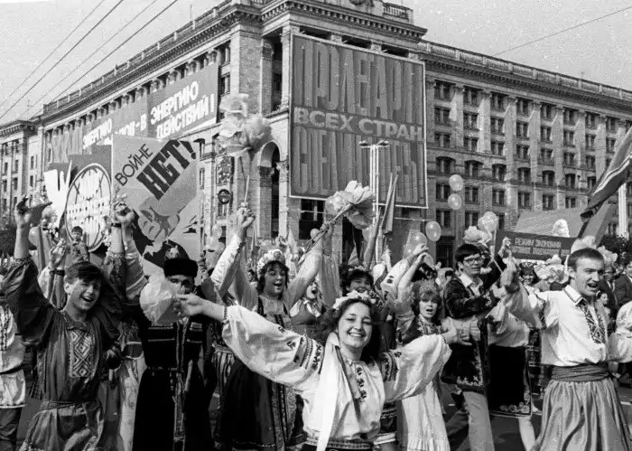 Тот самый парад в честь Международного дня трудящихся в Киеве, Украинская ССР, СССР, 1 мая. Парад прошел через пять дней после аварии на Чернобыльской АЭС 26 апреля. Коммунистическая партия Советского Союза знала об опасности, которой могли подвергаться демонстранты, но, тем не менее, парад был проведён.