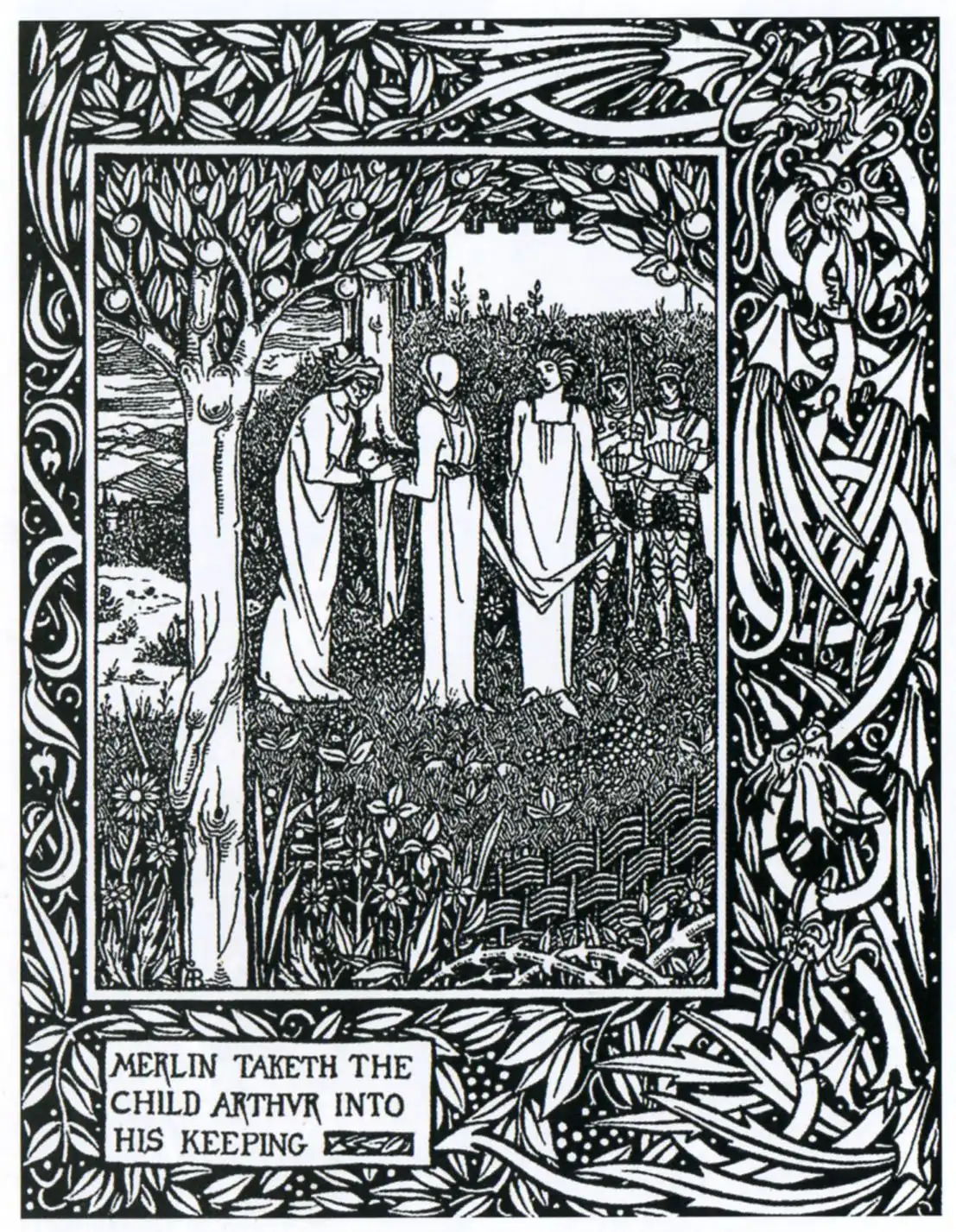 Мерлин берёт младенца Артура. Иллюстрация к роману Т. Мэлори “Смерть Артура”. 1893