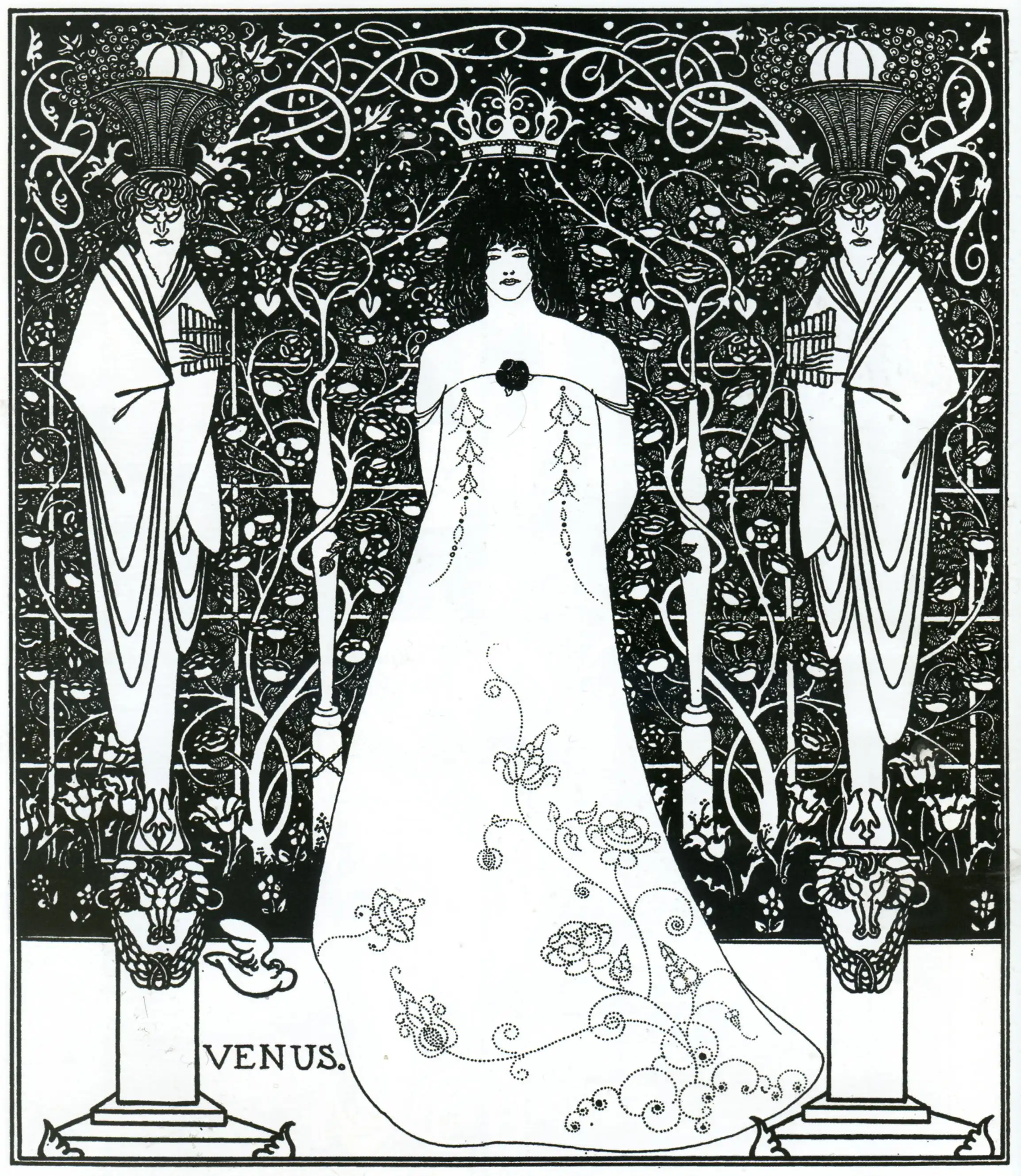 Венера между двумя ложными божествами. Иллюстрация к повести О. Бёрдсли “История Венеры и Тангейзера”. 1895