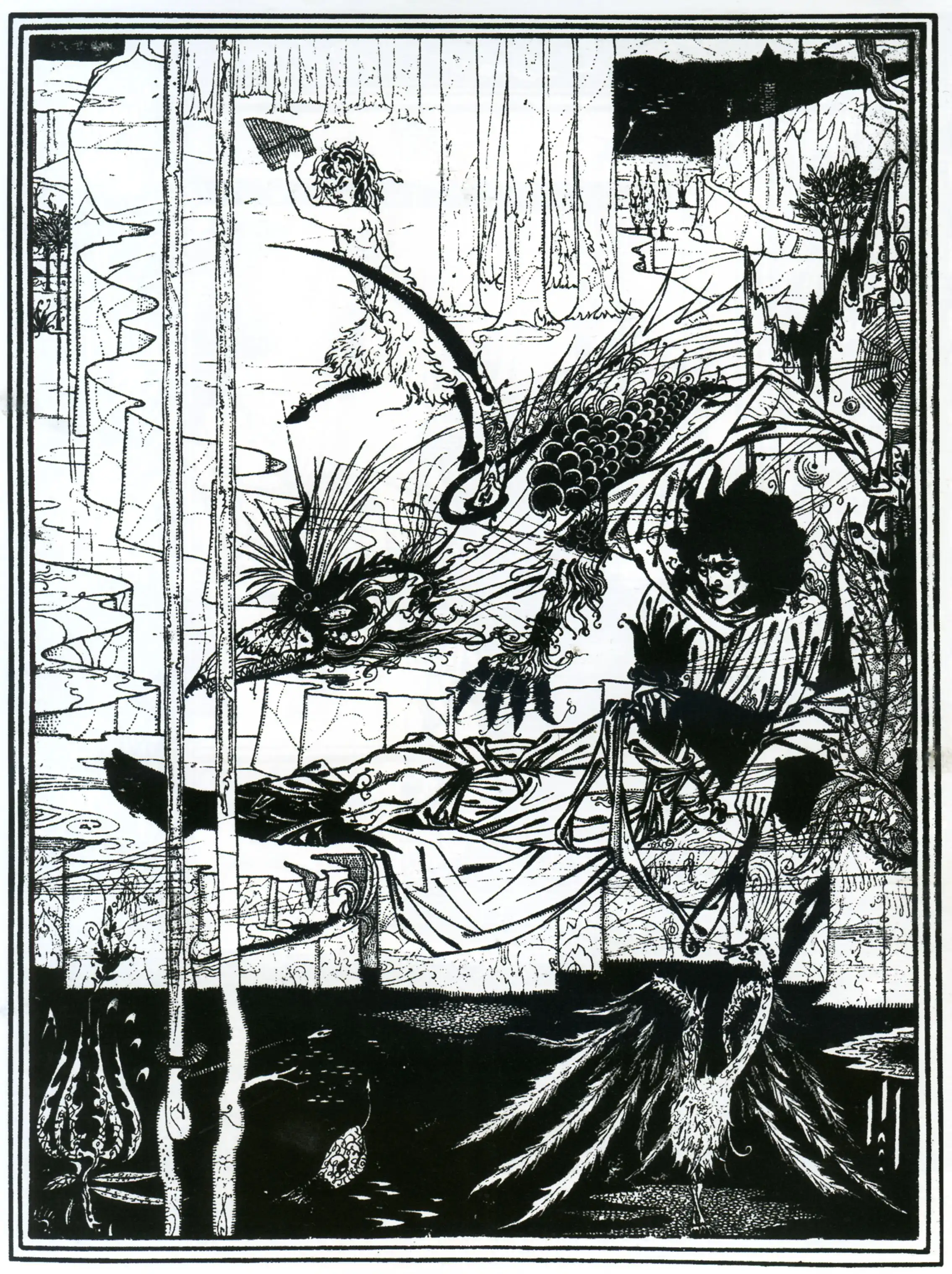Как Артур увидел зверя. Иллюстрация к роману Т. Мэлори “Смерть Артура”. 1893-1894
