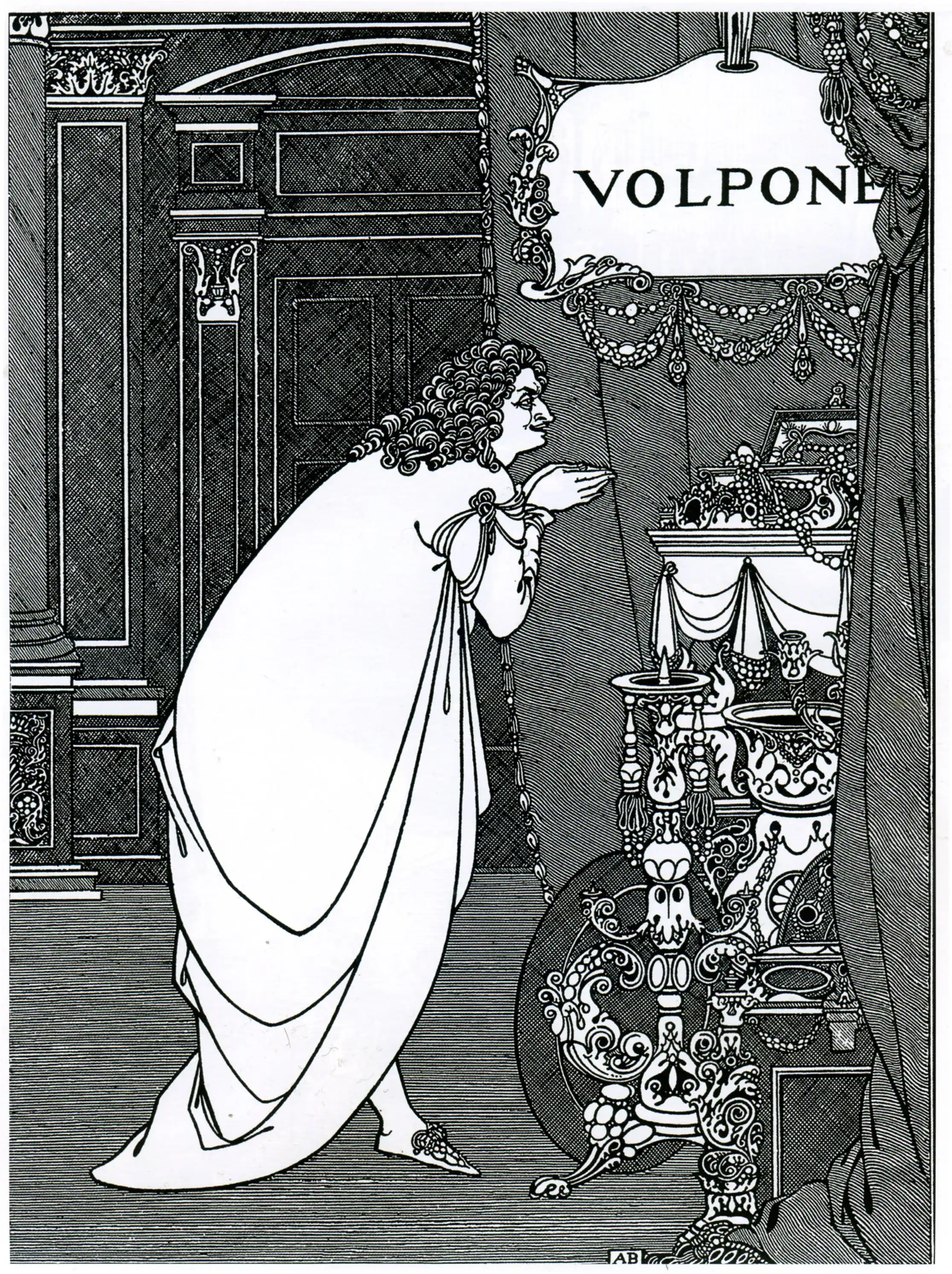 Вольпоне, поклоняющийся своему богатству. Иллюстрация для книги Б. Джонсона “Вольпоне”. 1897