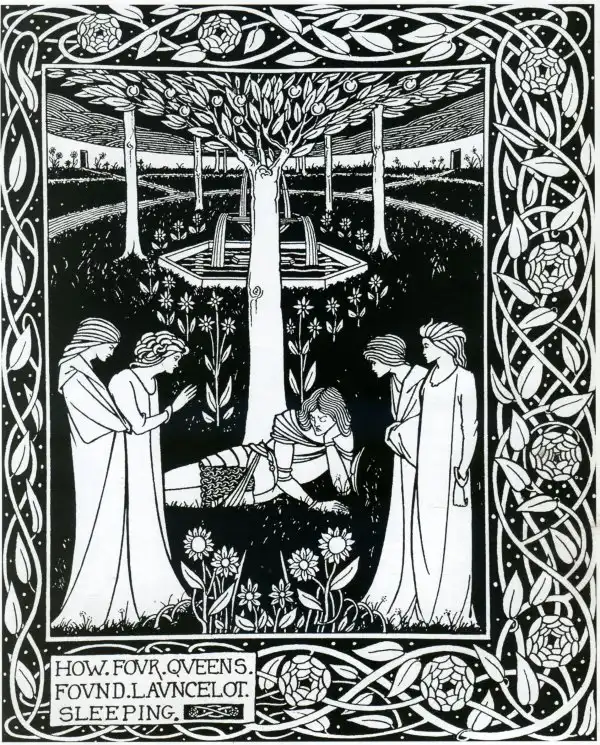 Четыре королевы и сэр Ланселот. Иллюстрация к роману Т. Мэлори “Смерть Артура”. 1893