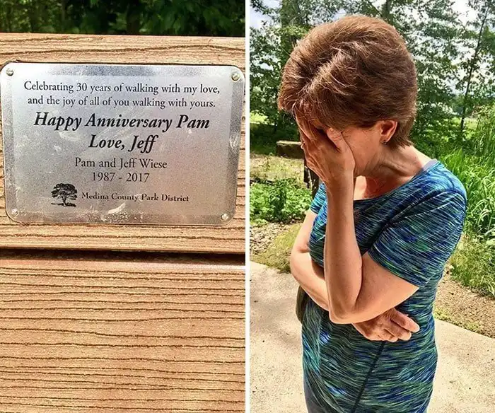 Уже 30 лет, как я гуляю со своей любовью и наслаждаюсь нашим прогулками. Счастливой годовщины, Пэм. С любовью, Джефф