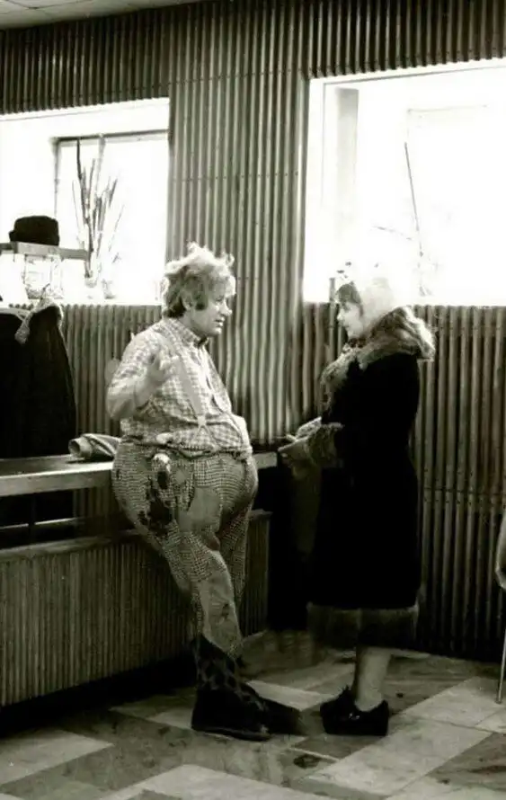 17. Спартак Мишулин с пропеллером и Ольга Аросева в холле служебного входа Театра Сатиры...Начало 1980-х