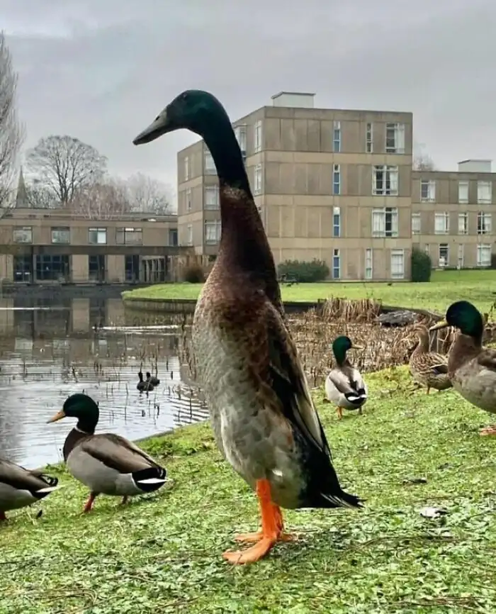 Самая крупная в мире кряква живет на территории Йоркского университета в Англии. ее рост - больше 1 метра