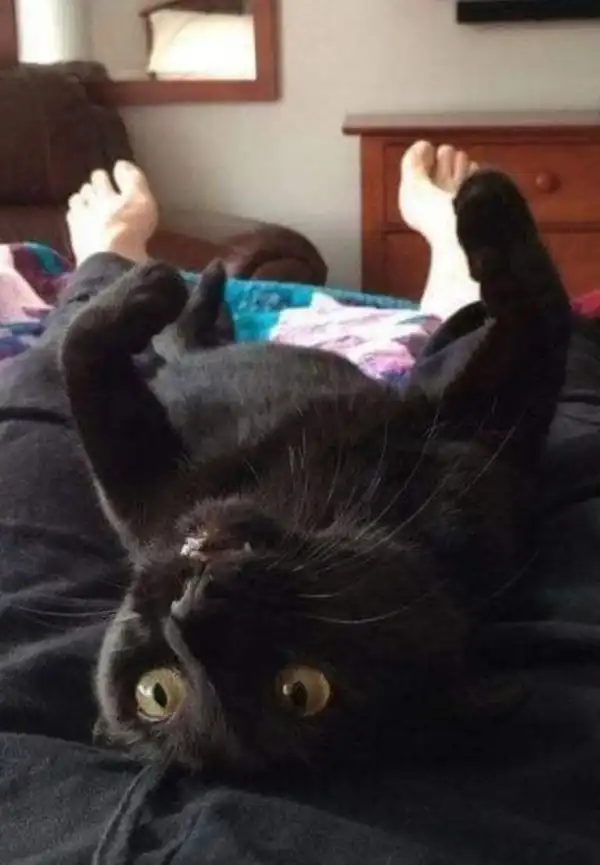 Здесь не только с первого, но и со второго взгляда не всё понятно. Комментаторы пришли к выводу, что тут мы имеем дело со ступенями, один из котов сидит ниже, и зритель видит только его голову. А глянцевая плитка создаёт иллюзию ровного бесконечного пространства