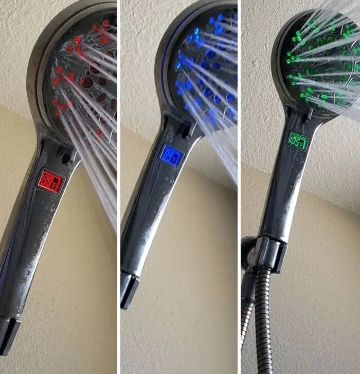 24. "Насадка для душа с цветовой индикацией температуры воды. Красный - слишком горячо, синий - слишком холодно, зелёный - идеально"