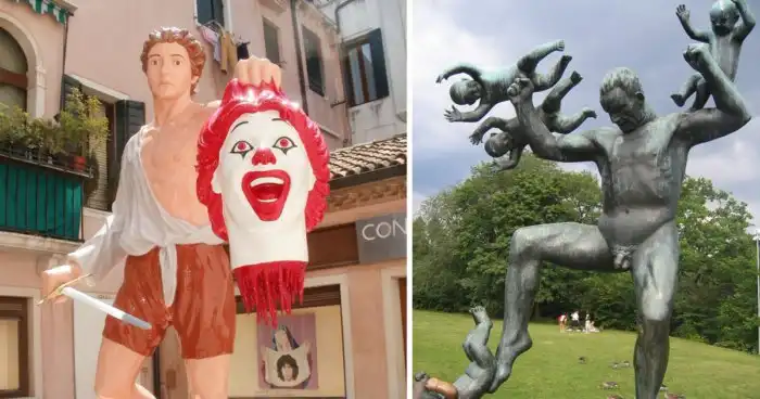 Во всех городах мира можно найти необычные и интересные скульптуры, авторы которых действительно постарались и проявили фантазию. Предлагаю и вам посмотреть на несколько шедевров, собранных со всего мира.