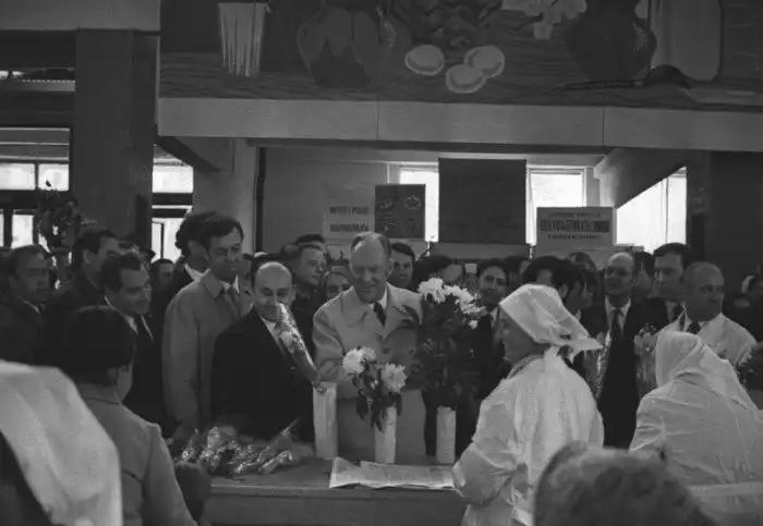 3. Госсекретарь США Уильям Пирс Роджерс общается с москвичами на рынке. Борис Косарев, май 1972 года, г. Москва.