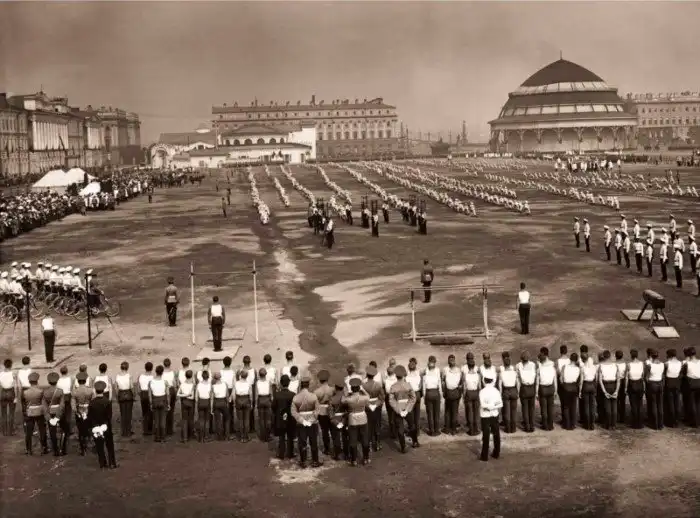 38. Реконструкторы начала XX века. Военно-спортивный праздник на Марсовом поле в честь 100-летнего юбилея Бородинского сражения. 1912 год