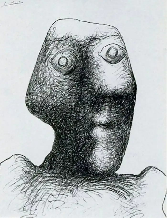 В тридцатых годах Пабло увлекся сюрреализмом, этот автопортрет он написал в 56-летнем возрасте, 1938