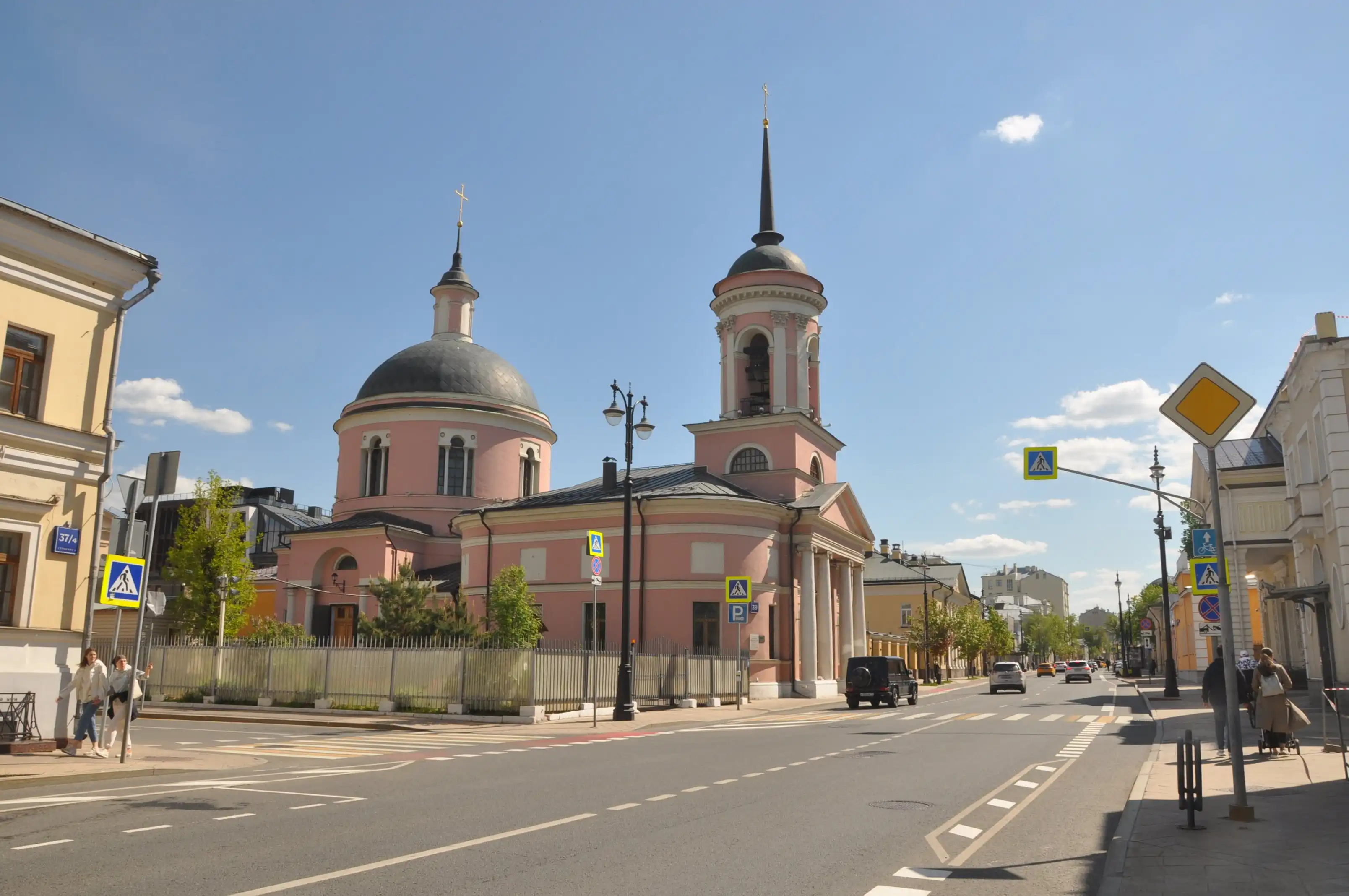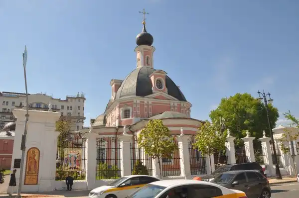 Храм иконы Божией Матери “Всех Скорбящих Радость”. XVIII в. Архитектор В.И. Баженов, XIX в, архитектор О.И. Бове. В 1683-1685 годах на этом месте построен каменный Спасо-Преображенский храм. В 1713 году в храме был освящён второй придел, посвящённый образу Божией Матери “Всех Скорбящих Радость”, по которому и весь храм стал называться Скорбященским. Классицизм.