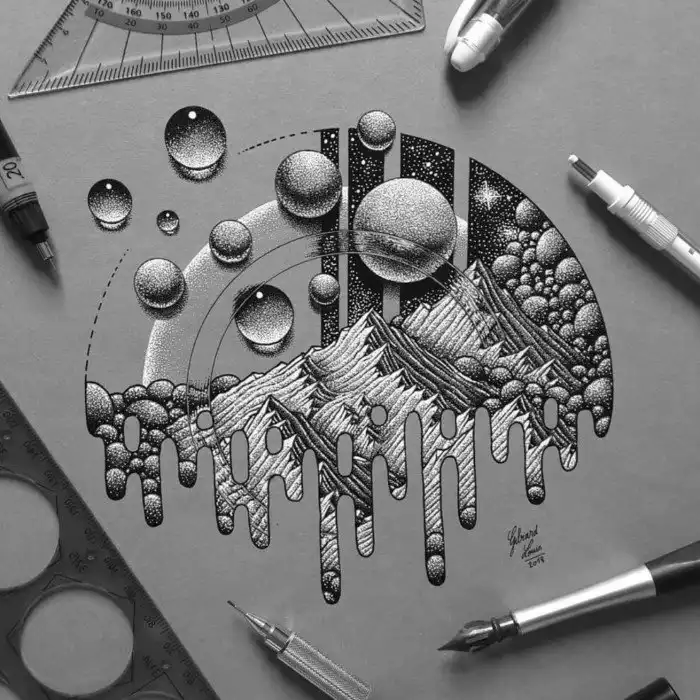 Работы французского художника Луи Гибиара (Louis Gibiard) - необычные и иногда даже странные. В каждом рисунке скрыт свой смысл и сюжет, вложенный полётом фантазии автора. Больше всего поражает, что он делает свои рисунки только обычной шариковой ручкой, или же простым карандашом.