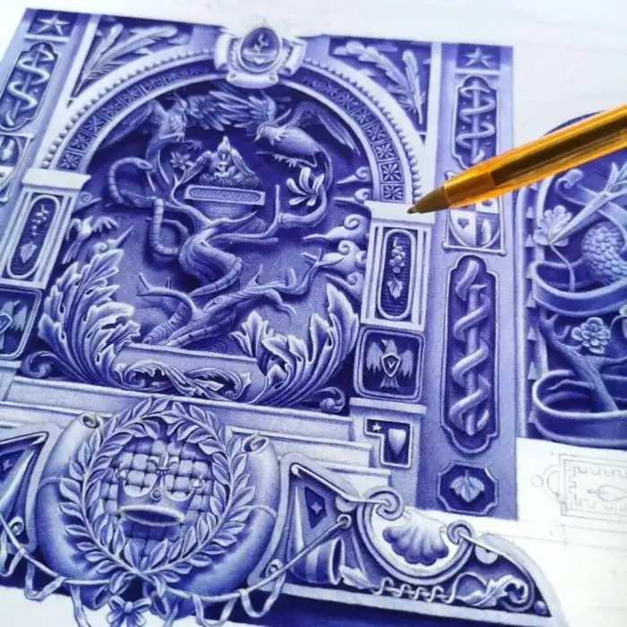 Французский художник Луи Гибиар (Louis Gibiard) рисует и публикует свои работы под ником vladinsk. Для создания рисунков он использует самые простые материалы - шариковую синюю ручку, или же простой карандаш. Парень рисует с самого детства. На фото ниже он сравнил свои рисунки в шесть лет и сейчас, в 18 лет: