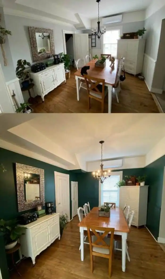 11. "Моя девушка хотела попробовать смелый цвет для нашей столовой. Я считаю, что получилось фантастически!"